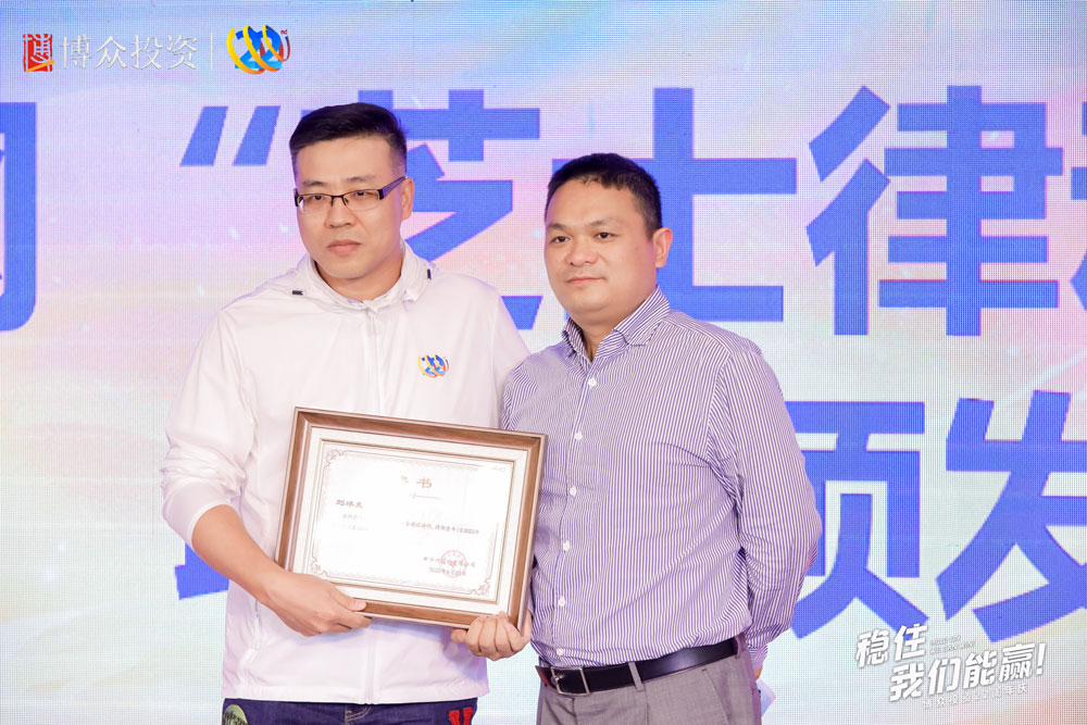 下一項慶典議程是博眾文化頒獎儀式,首先頒發的是“以奮斗者為本”獎。榮獲此項榮譽的團隊,是由朱艷湘率領的行政部。緊接著,頒發的是“本分”獎,榮獲此項殊榮的團隊是柯炎敏率領的合規部。均由鄒總為獲獎團隊頒發榮譽并進行合影留念。