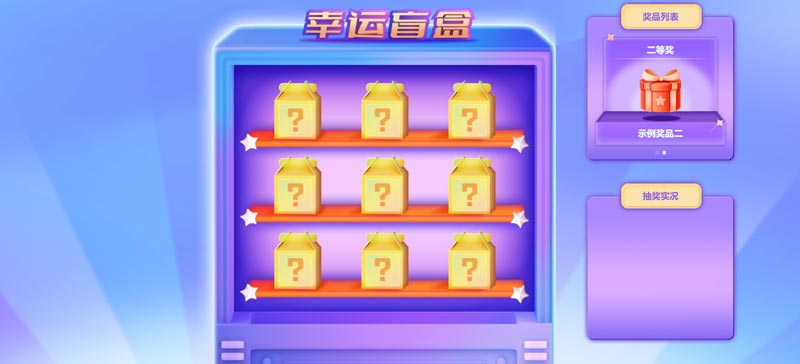 開盲盒游戲,也叫拆盲盒或幸運盲盒。開盲盒以其神秘感、趣味性備受游戲玩家喜愛,活動策劃師可以采用盲盒實物工具、盲盒電子機器或線上盲盒小程序來實現。這里推薦的是開盲盒游戲小程序。在會議入場、暖場流程中,把開盲盒小游戲介紹的背景板放置在現場,或者以海報的形式展現在會場大屏中,同時輔助以現場音效和燈光。參會者掃碼進入游戲小程序后,自選盲盒開獎,中獎后憑借中獎碼到兌獎臺領取獎品(可以是實物獎品、現金紅包、電子會員卡、電子消費券等),同時可以生成分享海報,促使用戶分享中獎海報,實現營銷裂變,達到宣傳會議活動的目的。